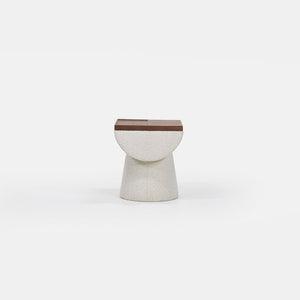 Solid oak top accent tables with upholstered bases. Natural woodgrain detail. Available in multiple colors and textures.