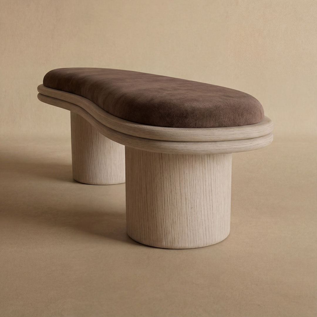 Inspired by Japanese history and design, the Torii is a reinterpretation of the classical archways of Japan. The rounded wood frame sits atop two totems, offering an exquisite depiction of open and closed space. The plush and textured upholstered top create a soothing finish and make this a must-have addition to any room.